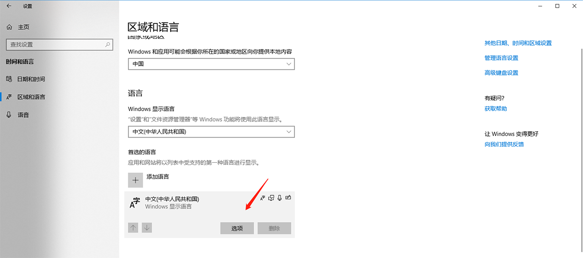 左下角【開始】圖標----【設置】----【時間和語言】----【區(qū)域和語言】----右側語言項中找到 windows顯示語言,點擊選中----點“選項”按鈕----在新窗口中往下看 鍵盤 列表,看如果有 美式鍵盤,選中----刪除。
